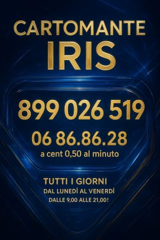 Benvenuta/o su Cartomante Iris, il tuo spazio dedicato alle letture del cuore. Qui troverai ascolto, guida e risposte sincere alle domande d’amore, di coppia e di sentimenti. Con la mia esperienza e l’intuito delle carte, ti aiuto a fare chiarezza nelle situazioni affettive e a ritrovare equilibrio nelle emozioni. Ogni consulto è riservato, empatico e personalizzato, per accompagnarti verso scelte consapevoli e un cammino sentimentale più sereno. chiamami con fiducia 899 026 519 a bassissimo costo 06 86.86.28 a solo cent 0,50 al minuto ! visita il mio sito web e chiamami. CARTOMANTE IRIS |