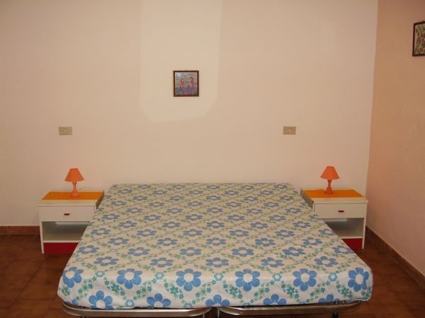 una prima grande stanza all'entrata, la cucina-tinello, dove oltre all'ambiente cucina c’è un divano letto a una piazza e mezzo. Dopo si entra nella camera con letto matrimoniale e un letto a castello con due posti singoli. Infine piccolo ripostiglio da cui si entra nel bagno con doccia, lavabo, bidè, armadietto mensolato, ecc.
