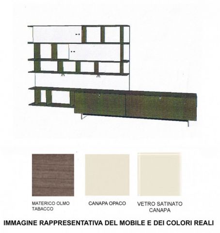 | Soggiorno caratterizzato da finitura a contrasto tra elementi in materico olmo tramato ed altri in canapa opaco. Struttura suddivisa in due cassettoni e contraddistinta da una serie di ripiani a giorno i quali possono essere celati da delle ante scorrevoli in vetro satinato. Presenta al di sopra del primo piano dei faretti per l’illuminazione. Ripiani e base in olmo tabacco mentre schienale e ante scorrevoli sono in canapa opaco. Dimensioni totali della composizione: Larghezza: 3900 mm Altezza: 1780 mm Profondità: 364 – 452 mm Materiale interamente nuovo. Per qualsiasi informazione non esiti a contattarci Possibilità di spedizione in tutta Italia |